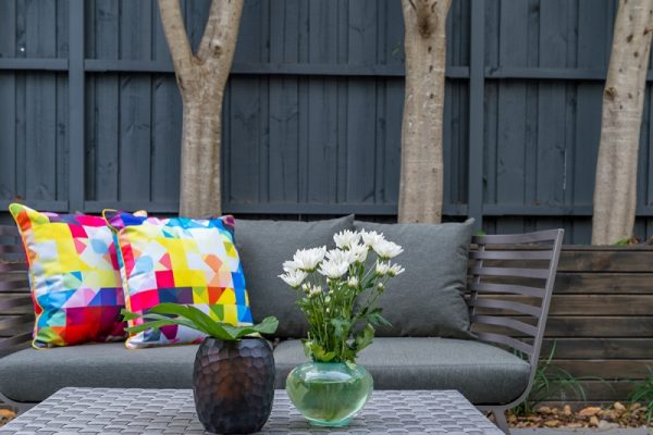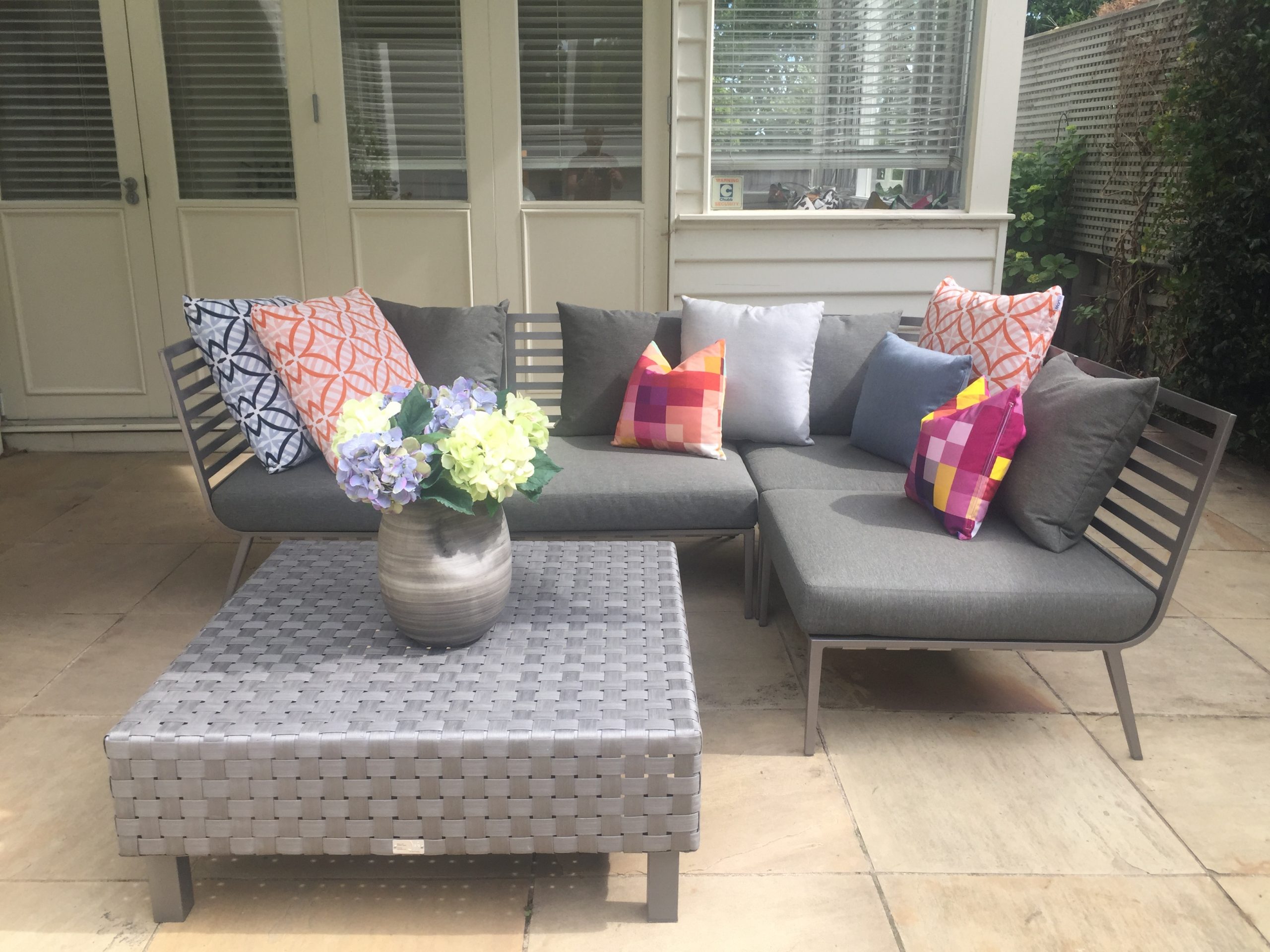 Powder coated aluminium frame with dark grey removable seat cushions
