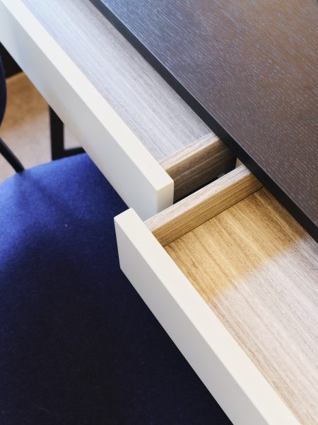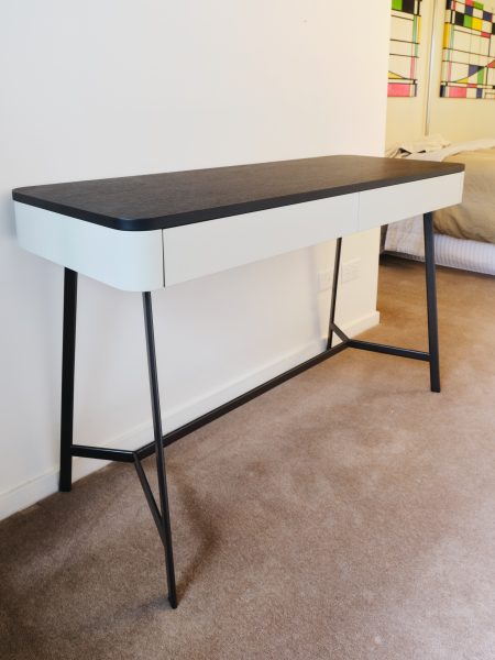 2 White drawers with black timber top and metal legs